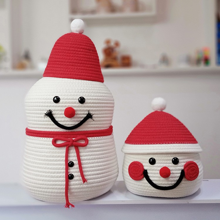 跨境热销雪人卡通收纳筐棉绳编织收纳筐桌面床头茶几收纳筐