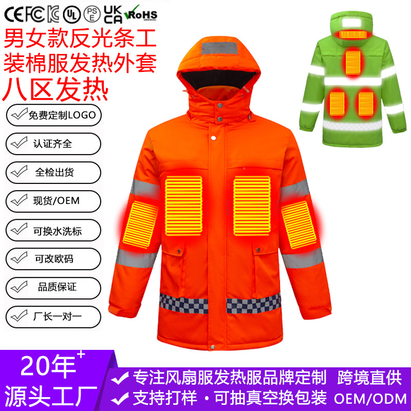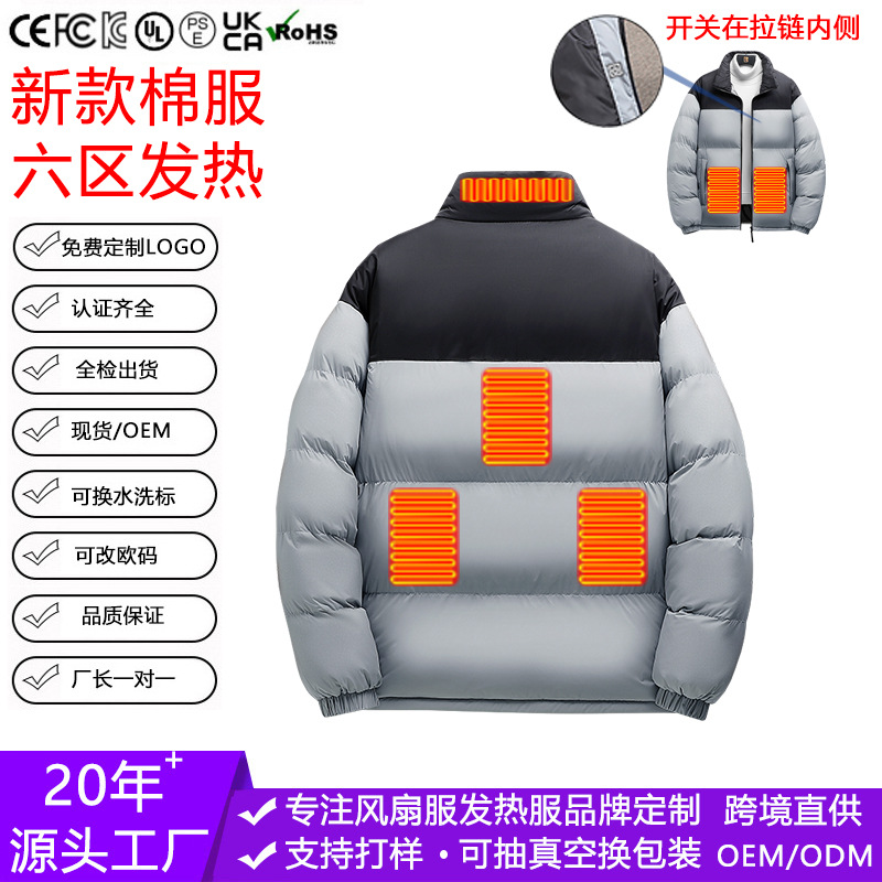 跨境新款发热棉衣6区发热智能 恒温保暖棉服多色选择工厂直销现货