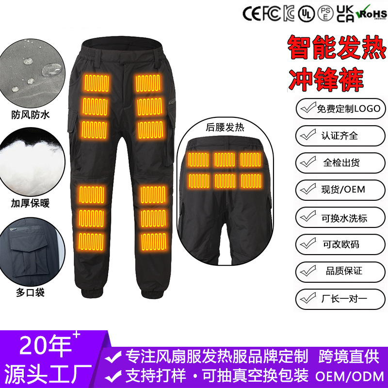 跨境专供发热裤冬季新款智能电热保暖棉裤户外加厚防寒加热束脚裤