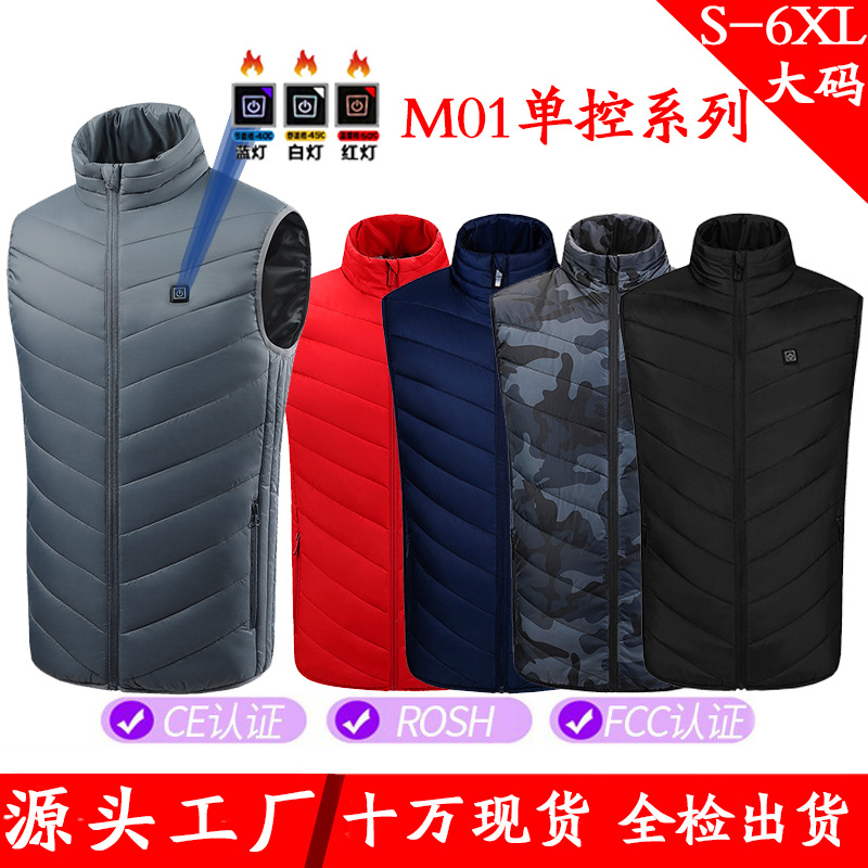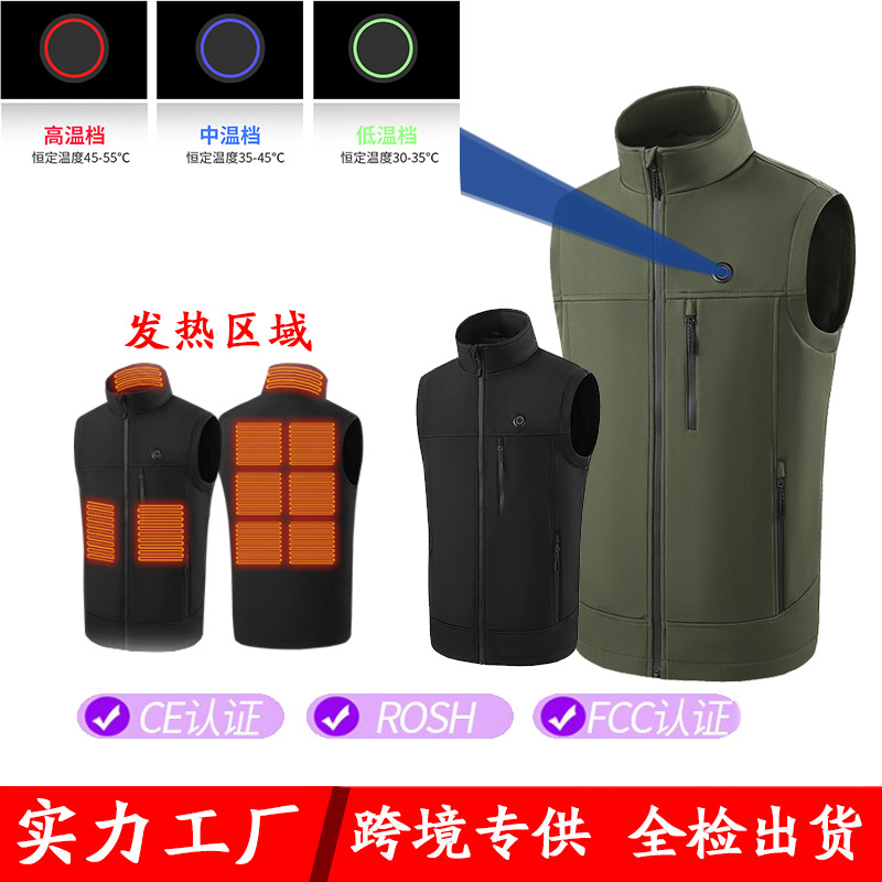 跨境M01立领电热马甲冬季保暖恒温发热服户外USB移动电源加热背心