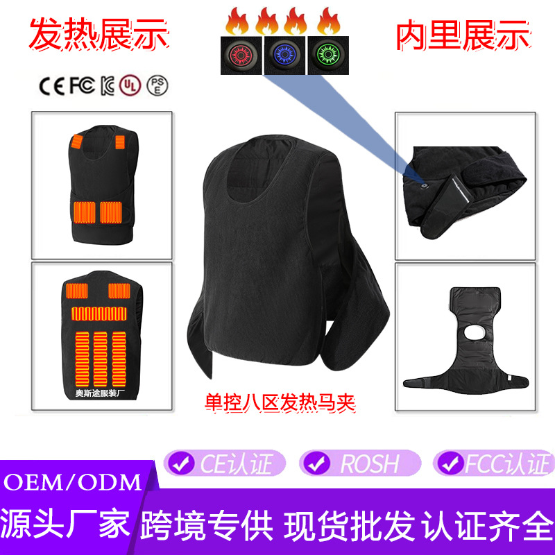 冬季男女同款智能加热马甲跨境18区发热背心户外保暖电热马夹背心