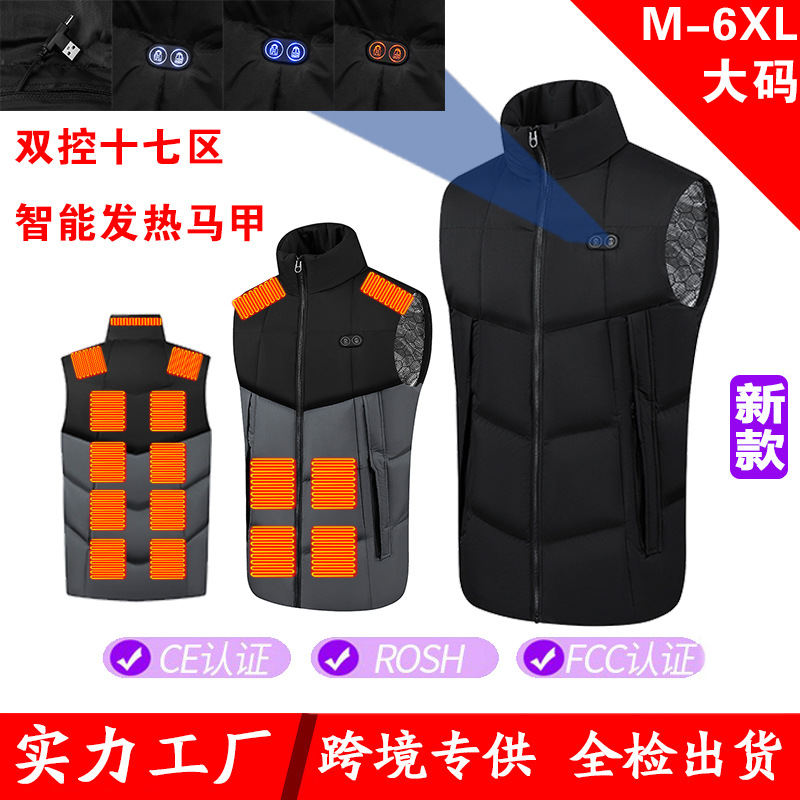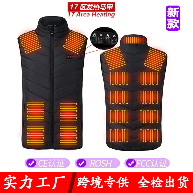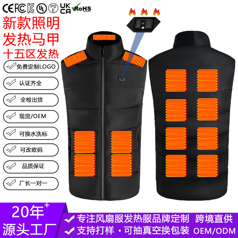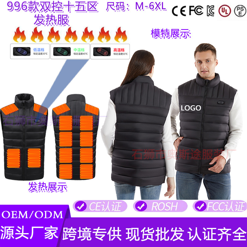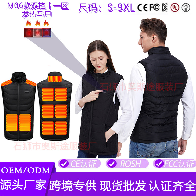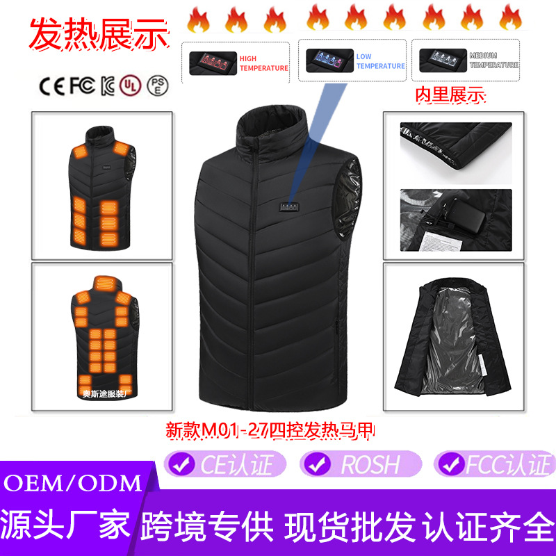 跨境27区四控发热马甲冬季智能电加热背心男女士同款保暧发热衣服