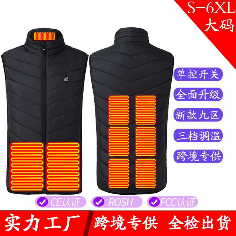 亚马逊男士新款电热坎肩加热棉衣 冬季中老年人保暖USB智能发热服