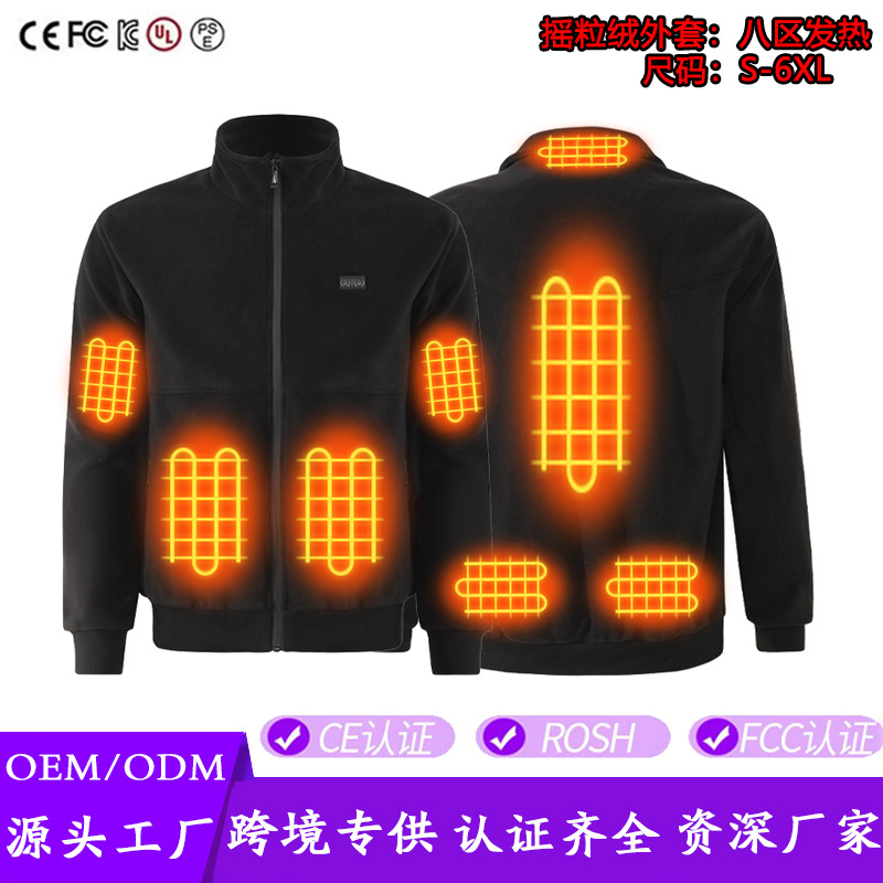 新款跨境专供智能发热三控四区发热摇粒绒电热保暖外套双接头恒温