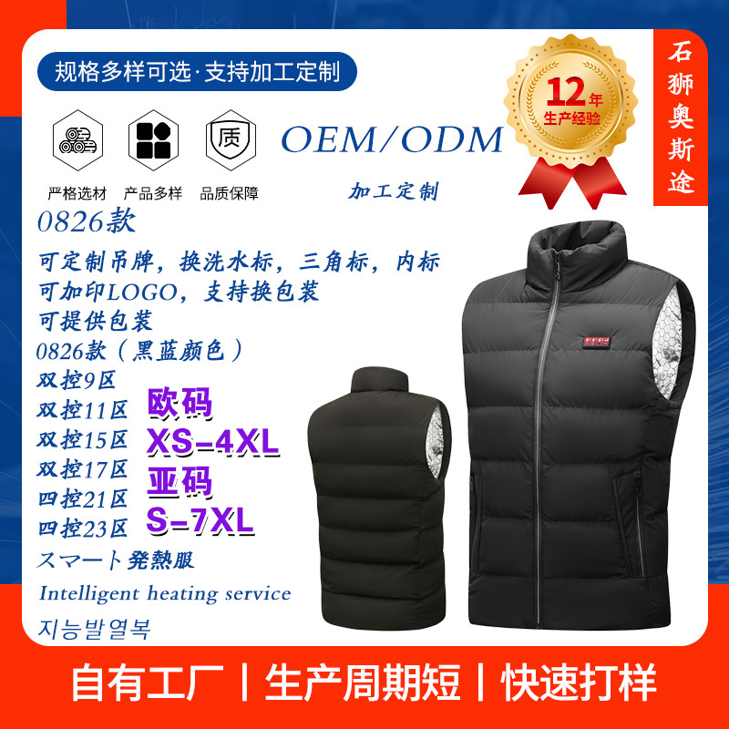 源头厂家定制四控26款23区马夹立领加热棉服背心冬季智能发热马甲