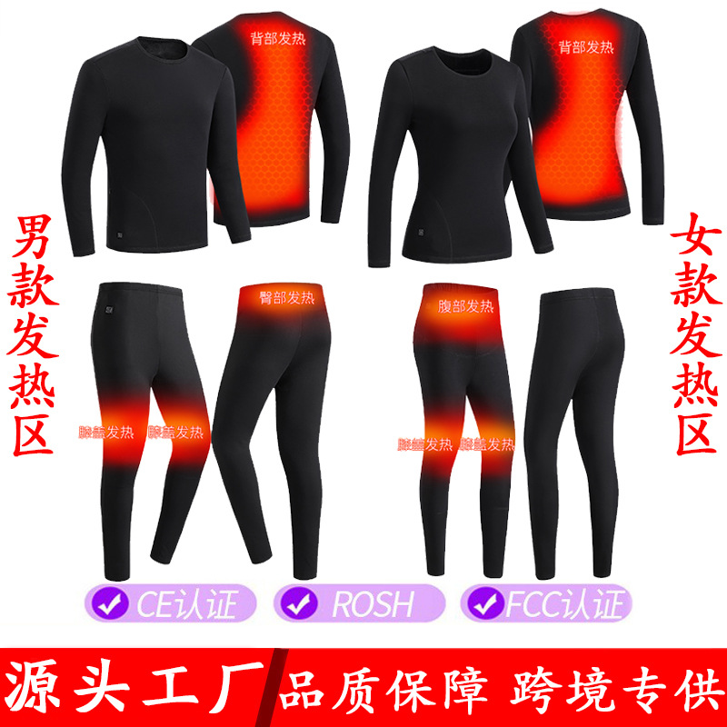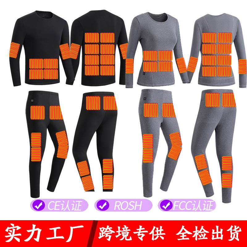 跨境智能恒温电热保暖内衣加热服男女款冬季服装加绒加厚发热套装