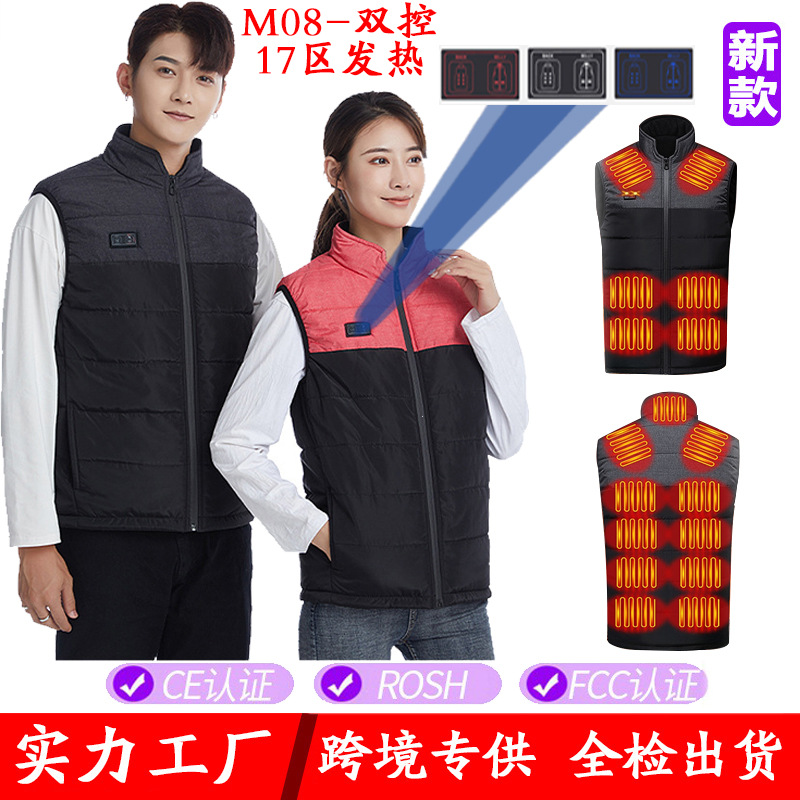 亚马逊跨境女款M08立领发热马甲冬季电热保暖背心USB充电加热外套