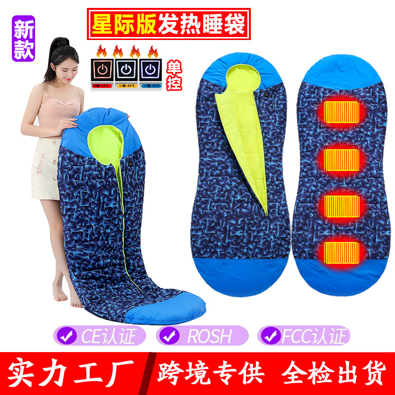 跨境发热睡袋电加热棉睡袋成人冬季保暖户外运动露营野营加热睡袋