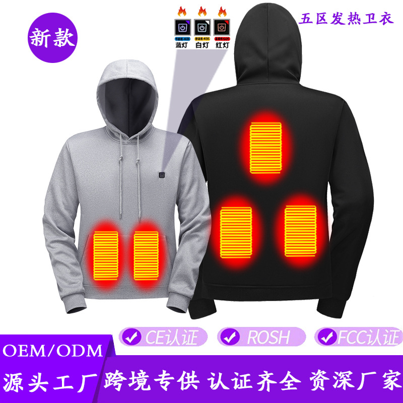 亚马逊跨境男士新款加热电热卫衣 户外连帽USB智能充电保暖发热服