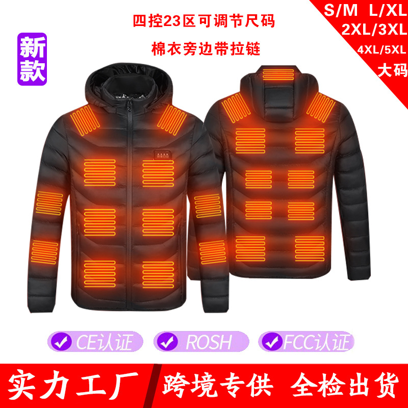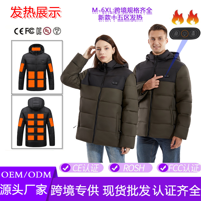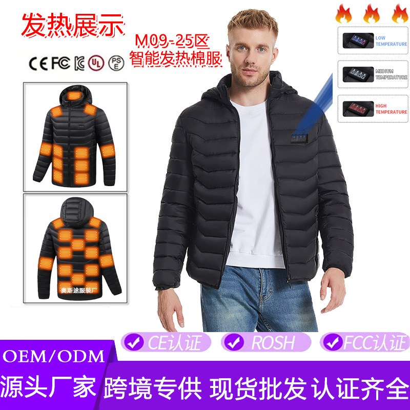 跨境直销发热服加热棉衣冬季智能电热带帽棉服户外恒温保暖外套男