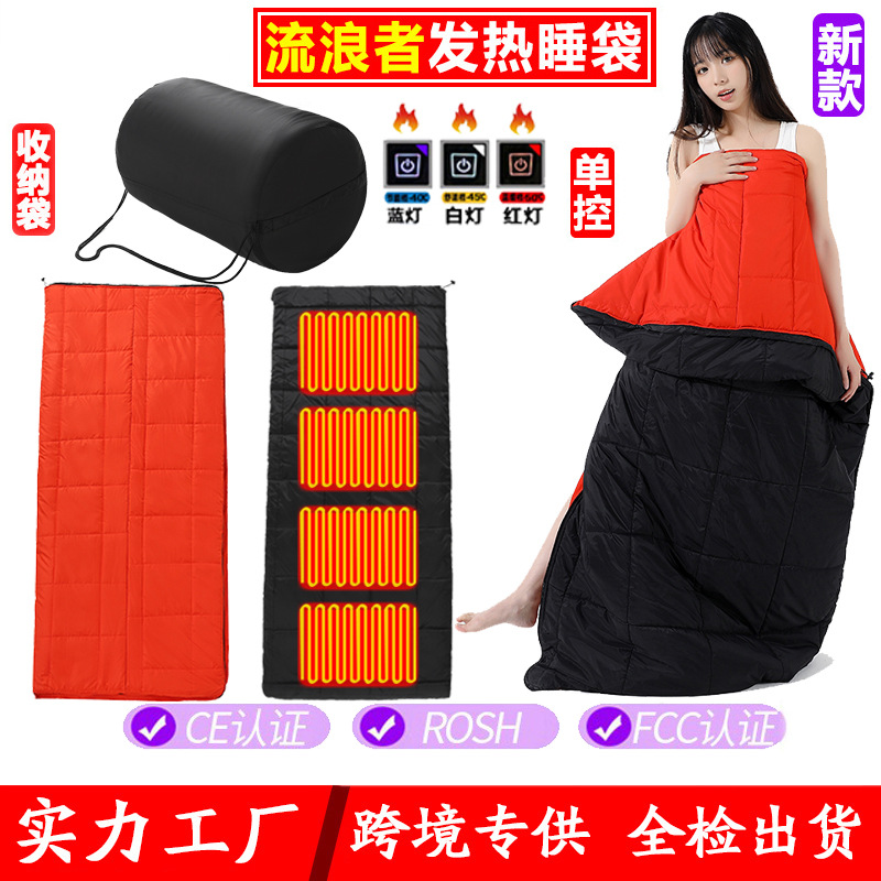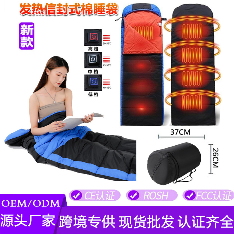 跨境新款信封式智能保暖睡袋户外露营恒温加热睡袋电热发热棉睡袋