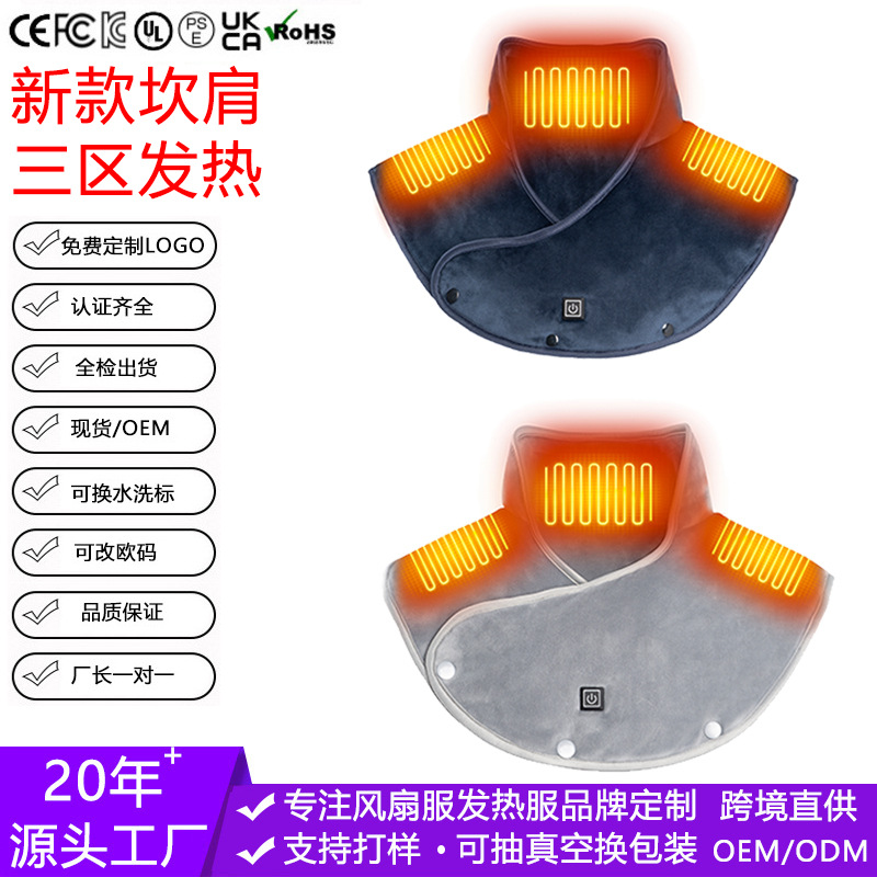 亚马逊跨境爆款热敷理疗肩颈加热貂绒披肩电热肩颈部双层发热坎肩