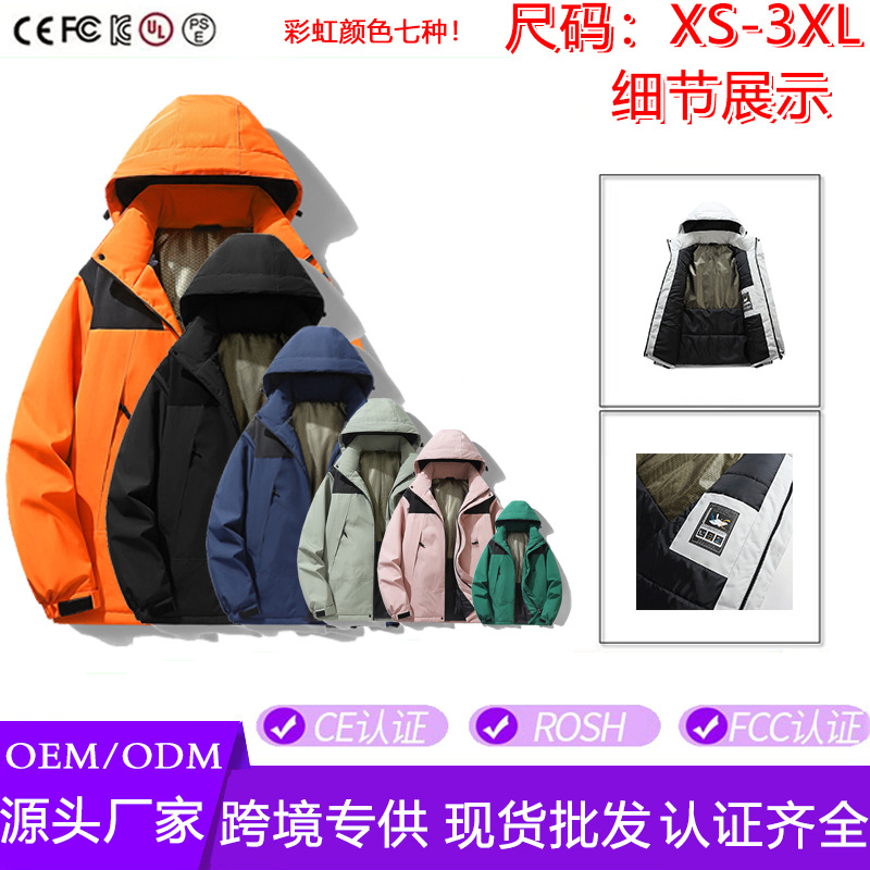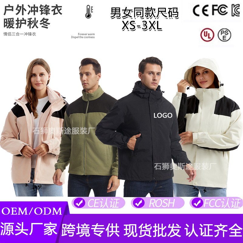 跨境男女冲锋衣三合一款长袖立领戴帽登山服户外旅游防风外套夹克