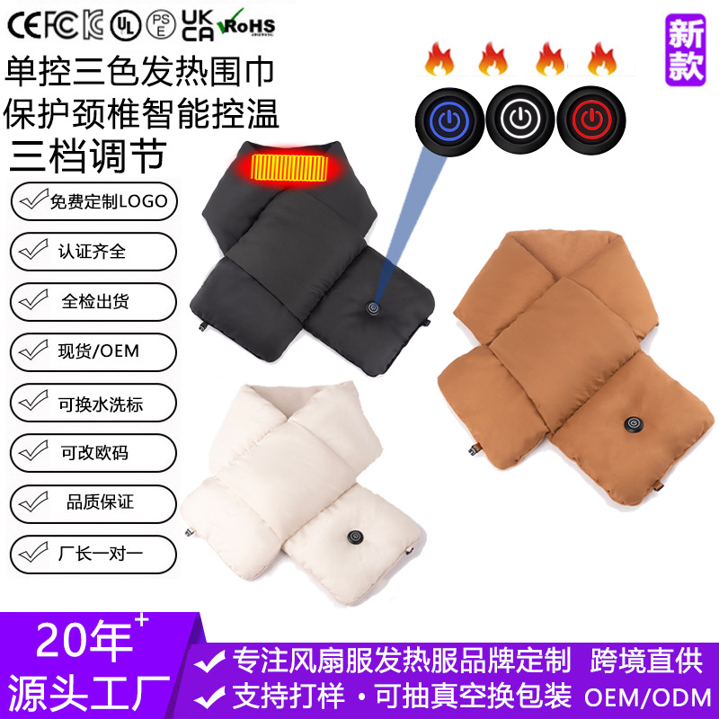 亚马逊发热围巾冬季保暖户外男女款智能加热颈部时尚休闲电热围脖
