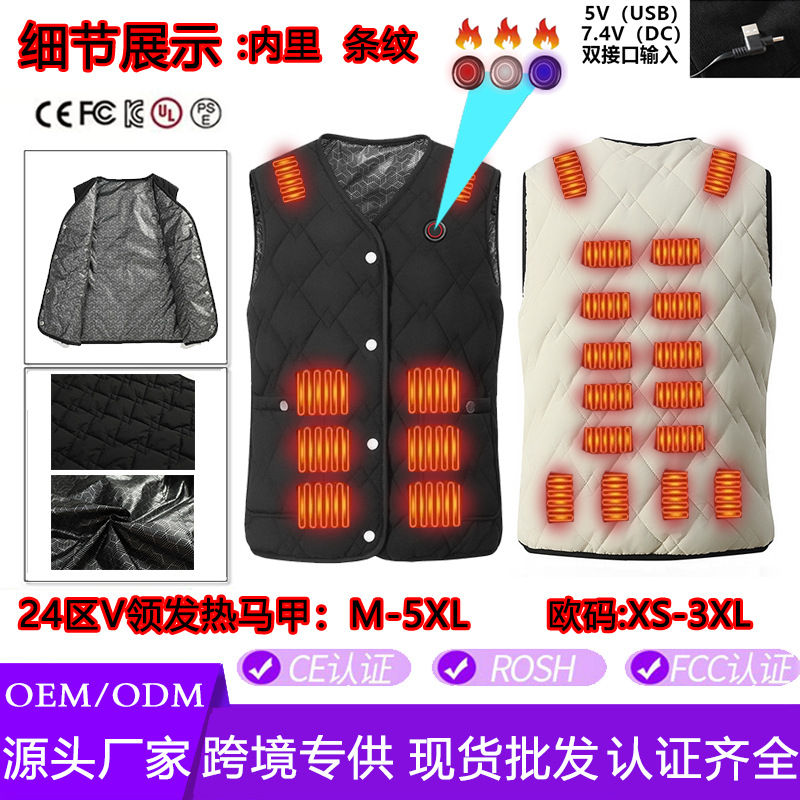 新款V领发热服5V/7.4V充电加热马甲跨境冬季恒温保暖智能电热背心