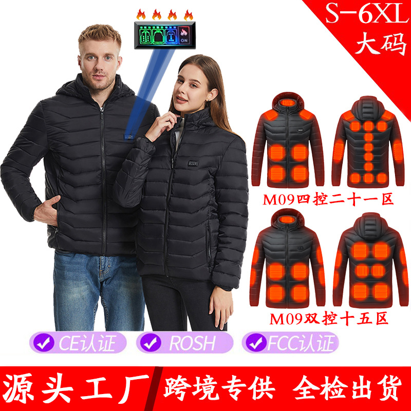 冬季跨境男女M09智能发热棉衣USB充电连帽加热立领电热保暖服外套