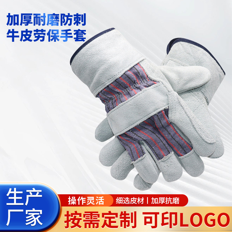 加厚耐磨防刺牛皮工地工厂工人劳工搬砖电焊户外透气劳保防护手套