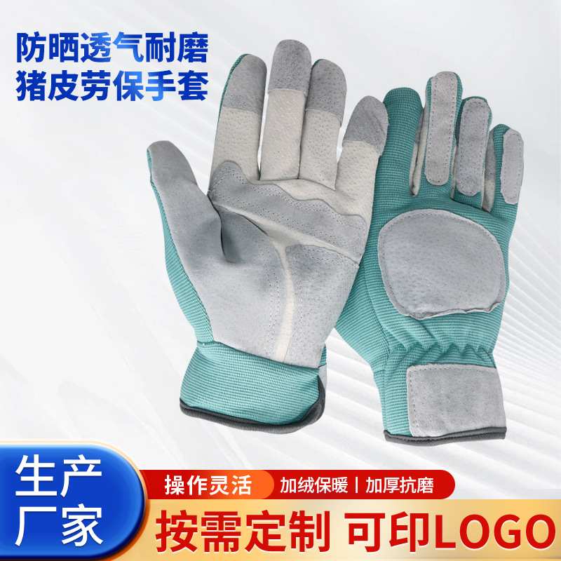防晒透气耐磨贴手夏季猪皮加固加托手套园艺装配维修露营防护手套