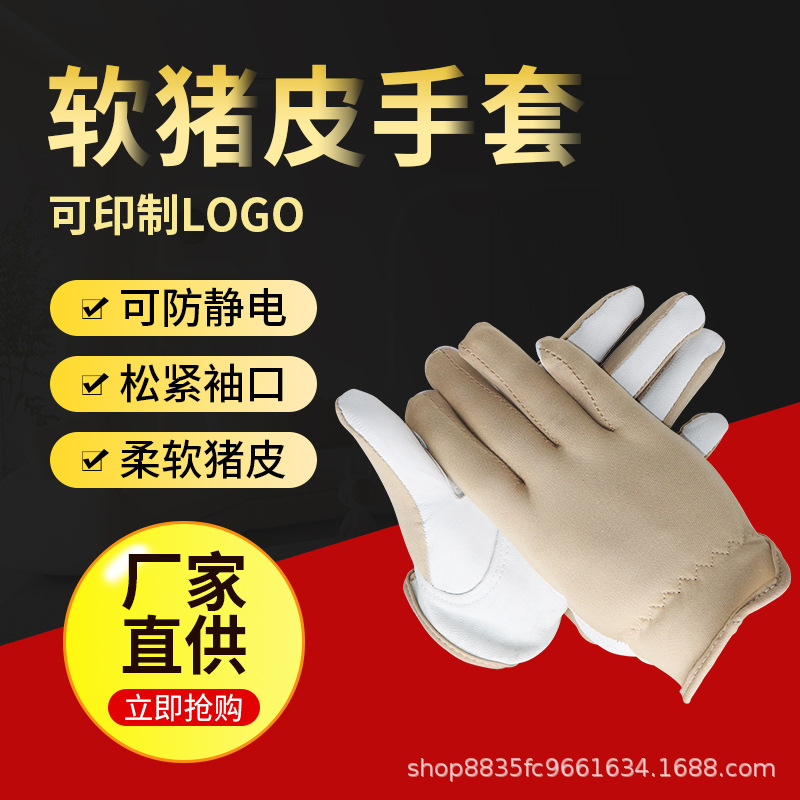 防静电软猪皮手套电子车间机械加工耐磨透气耐酸碱劳保手套