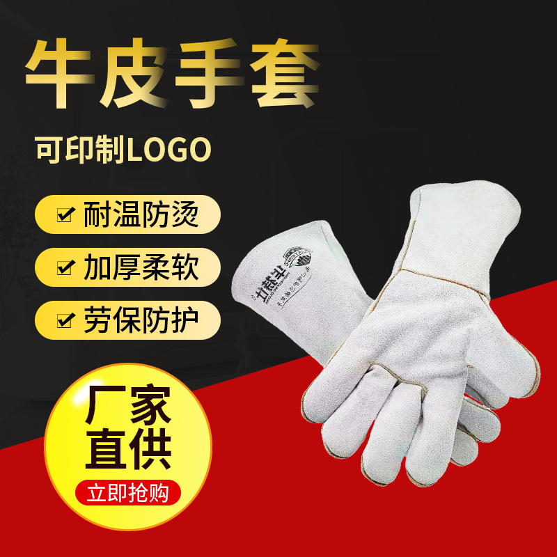 电焊手套牛皮耐磨耐高温防烫长款加厚柔软焊接劳保防护焊工护手套