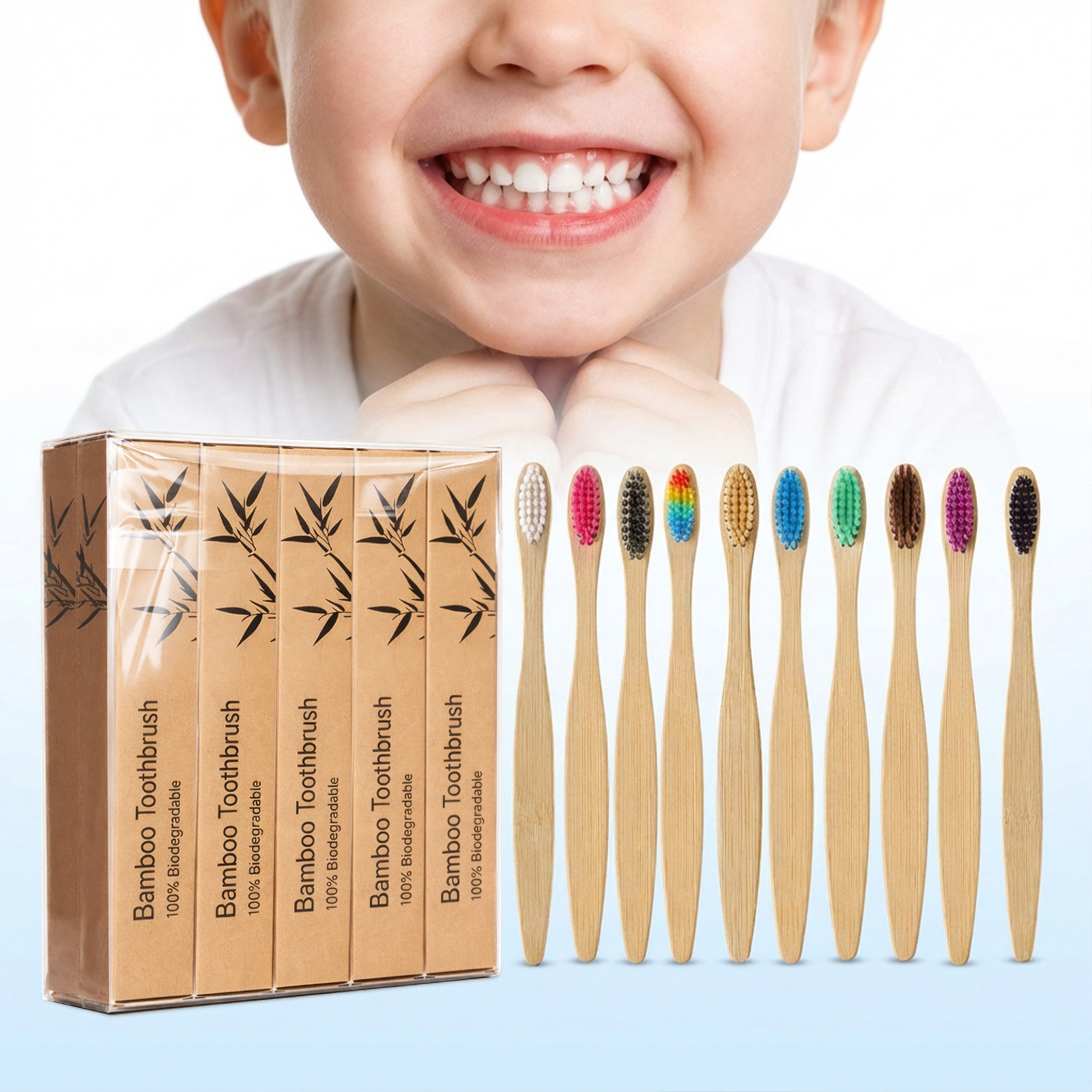 竹制牙刷套装 温和清洁手动轻便舒适手柄适合日常家用竹制牙刷