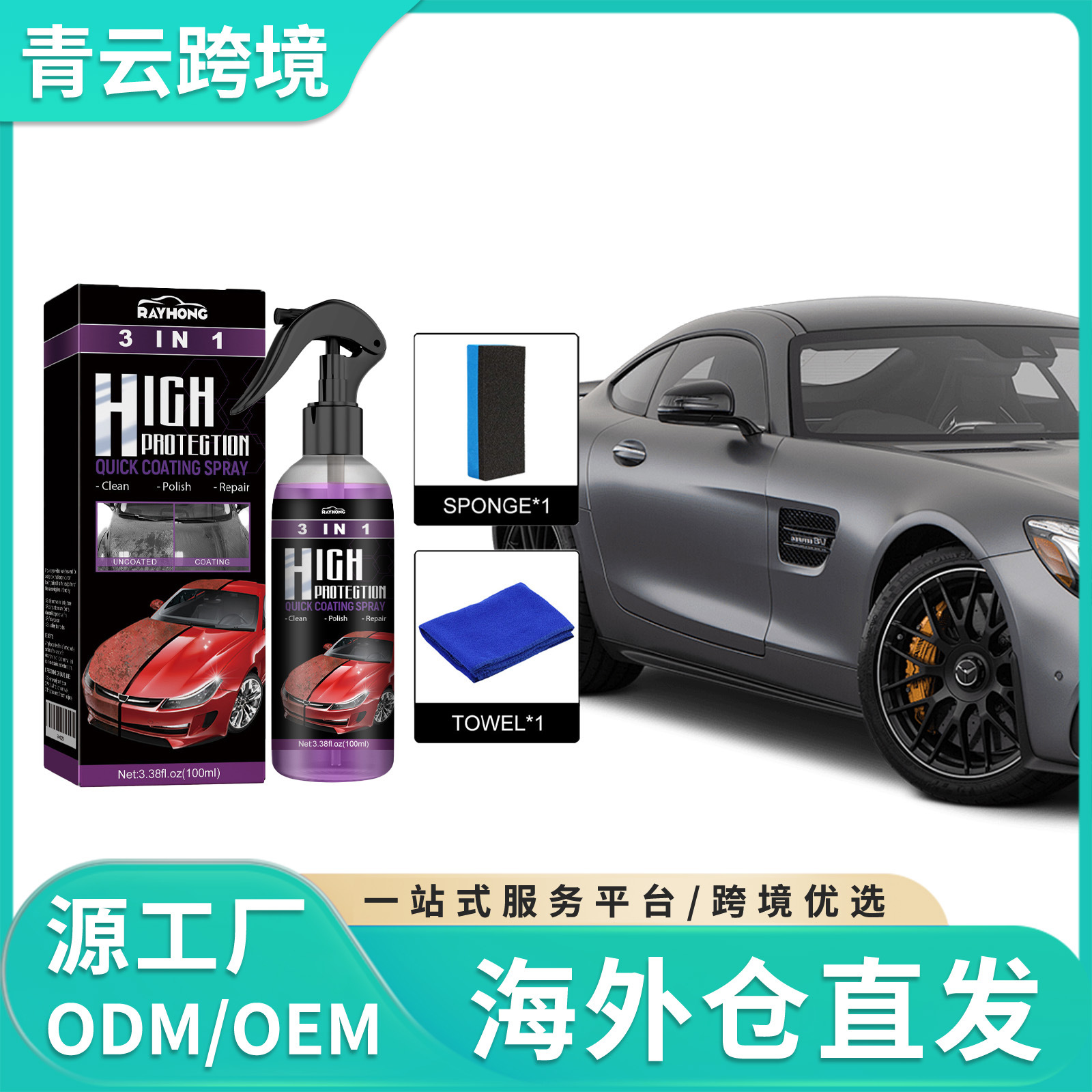 Rayhong汽车3合1高镀膜喷雾 快速涂料自动手涂料改色清洁镀膜喷雾