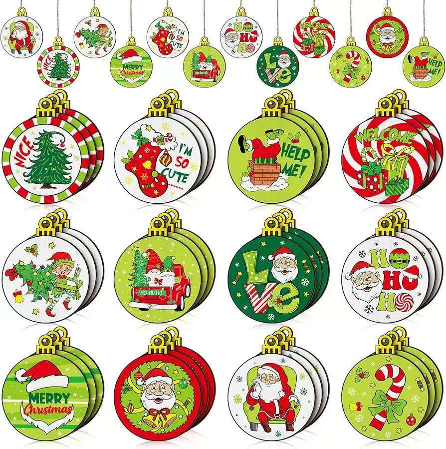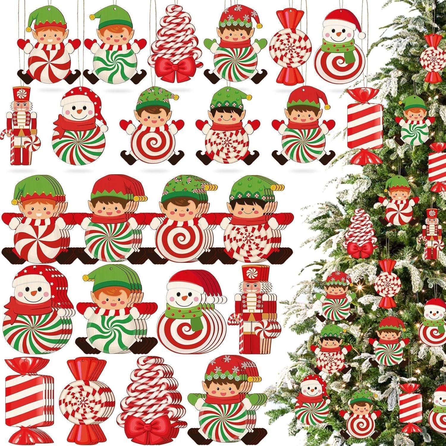 30件圣诞树饰品套装2d木质圣诞糖果平面装饰挂件圣诞派对装饰挂件