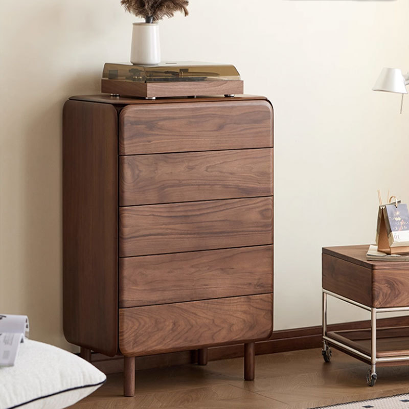 北美黑胡桃木五斗柜现代简约梳妆柜北欧实木樱桃木卧室收纳储物柜