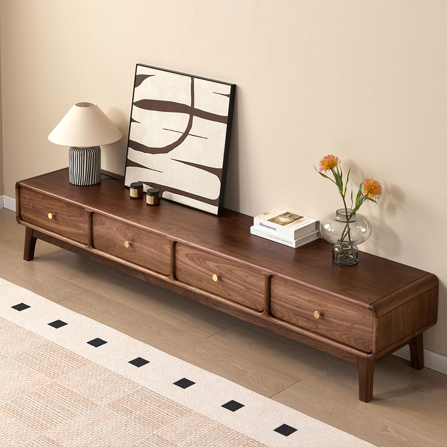 侘寂风异形地柜电视柜北美黑胡桃木全实木简约轻奢创意落地视听柜