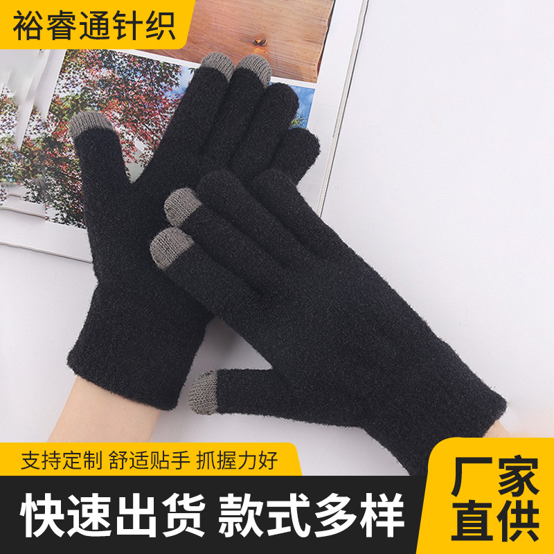 秋冬季新款触屏保暖户外纯色针织手套防寒毛线防滑分指保暖手套