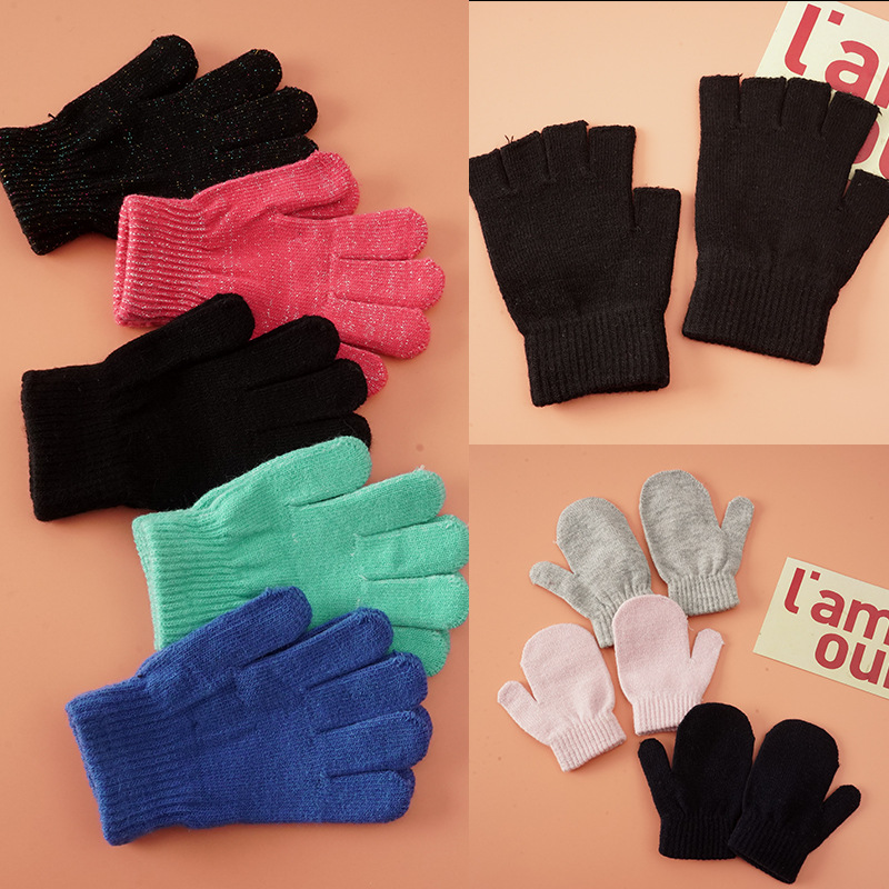 2023新款儿童手套半指儿童魔术手套纯色百搭五指儿童魔术手套批发