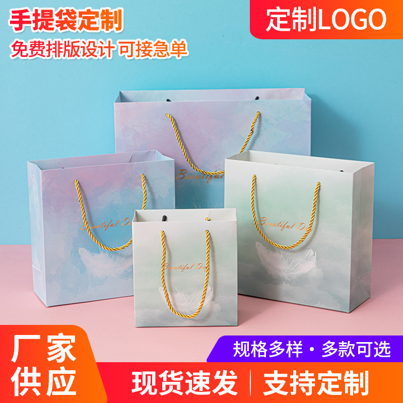 现货白卡纸袋手提袋礼品袋通用包装袋彩印纸袋购物袋化妆品包装袋