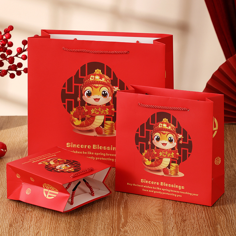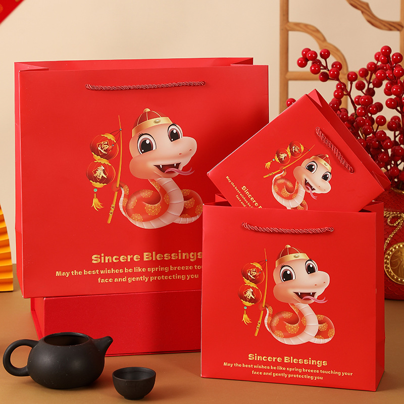 2025新款蛇年礼品袋红色手提袋喜庆新年伴手礼物袋纸袋批发