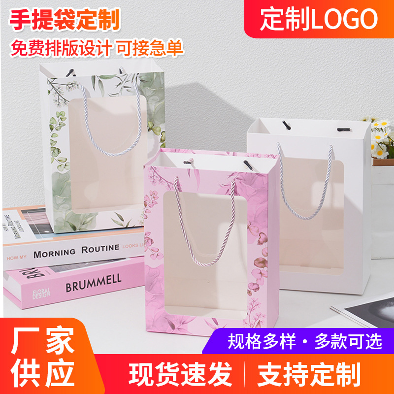 透明橱窗手提袋教师节鲜花花束伴手礼手提袋玩偶包装袋开窗礼品袋