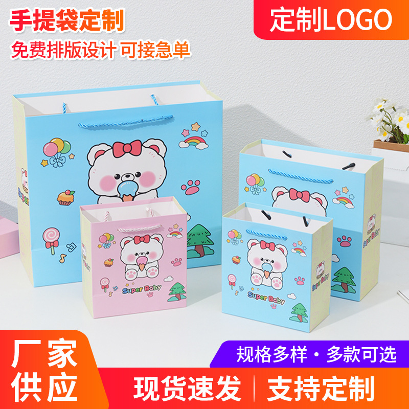 白卡纸手提袋可爱卡通小熊生日礼物礼品袋服装购物烘焙包装手提袋