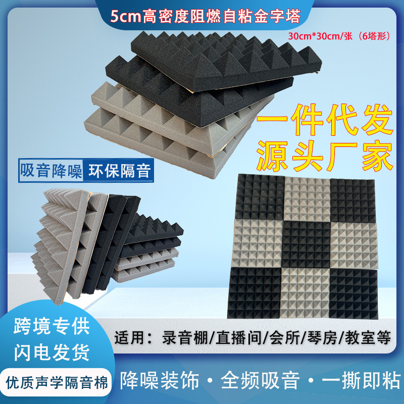 跨境小张金字塔吸音棉墙体自粘隔音棉架子鼓房录音棚直播间消音绵