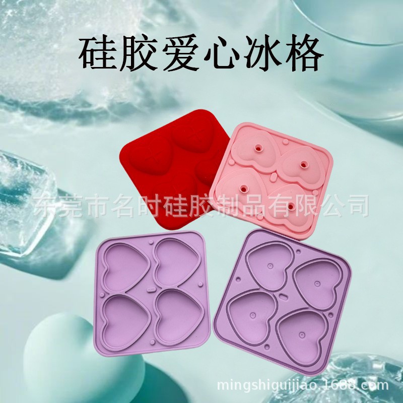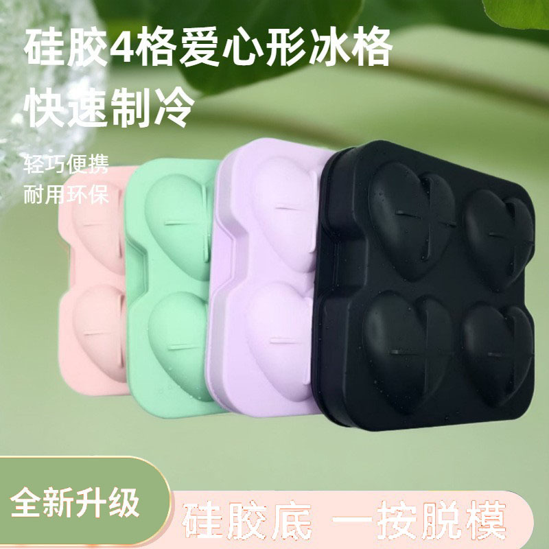 创意4格爱心硅胶冰块模具冻冰格制冰易脱模无异味家用制冰盒神器
