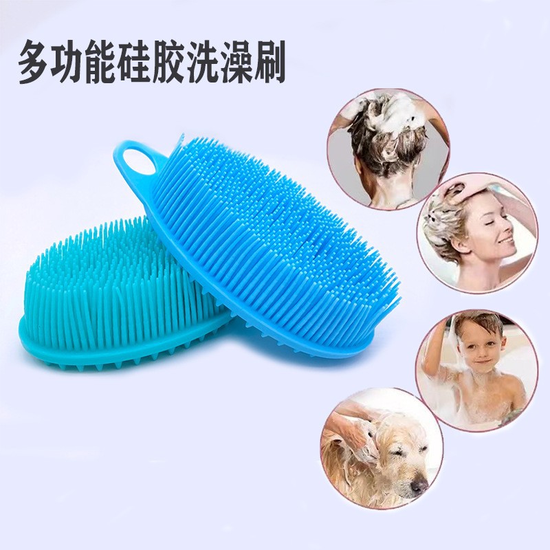 跨境热销带挂钩宠物硅胶洗澡刷洗头刷双面按摩硅胶软毛搓澡刷