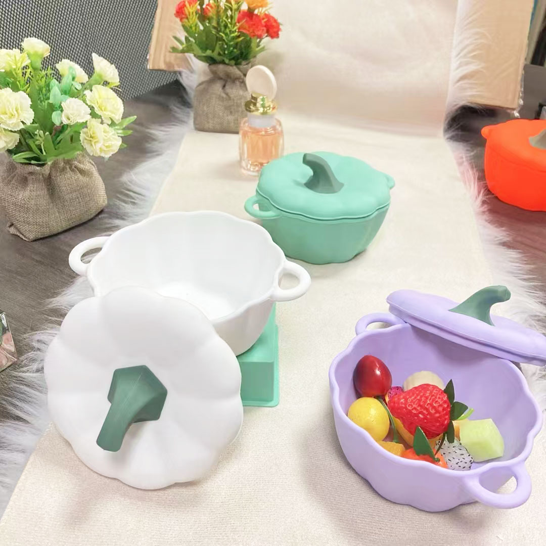 新款宝宝辅食碗婴儿防摔硅胶吸盘碗训练碗勺套装硅胶碗南瓜碗批发