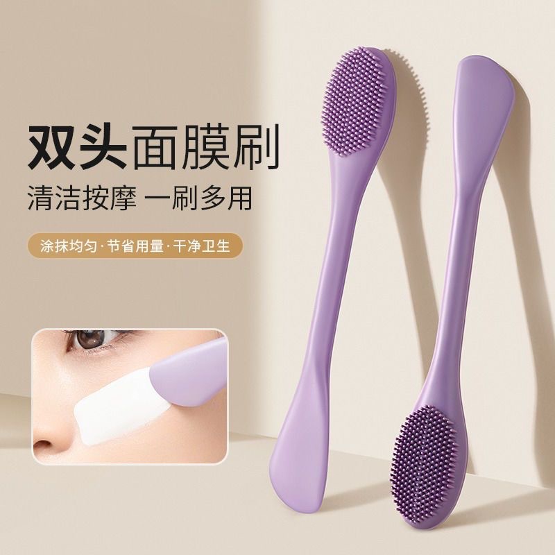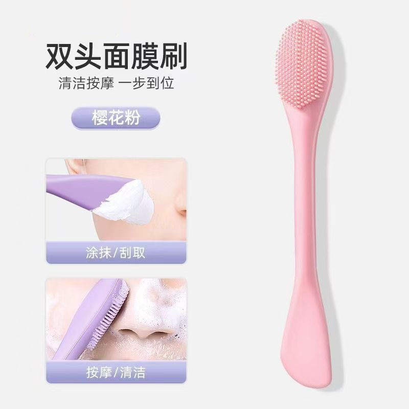 新款双头硅胶面膜刷洁面刷二合一两用脸部清洁按摩刷美妆工具刷子