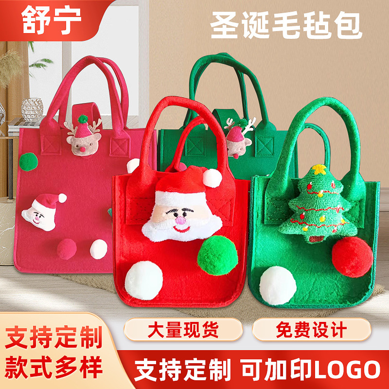 圣诞节毛毡手提袋平安夜手提毛毡苹果袋手提小尺寸毛毡糖果礼品袋