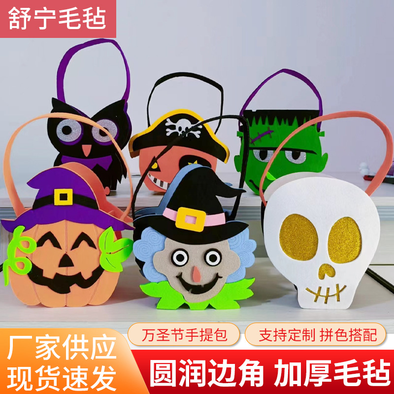 毛毡万圣节手提包儿童手工DIY拼接糖果袋创意搞怪手提南瓜袋