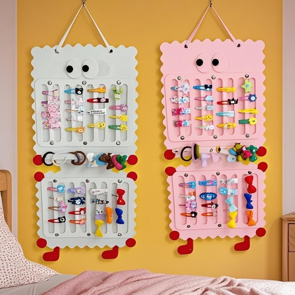 可爱毛毡发夹收纳壁挂大容量免打孔首饰整理架 卧室墙面 装饰收纳