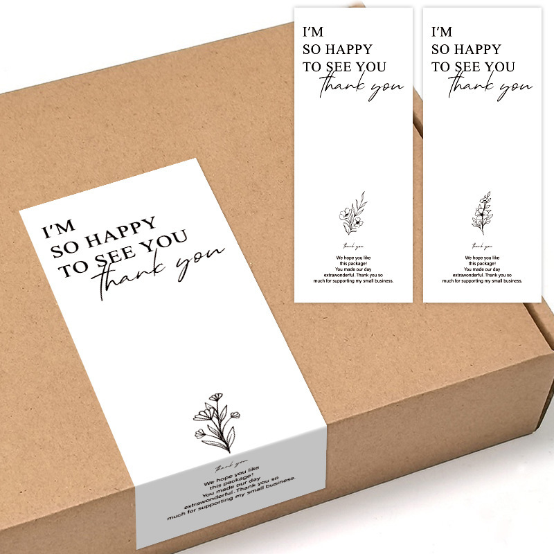 50张/包现货简约花卉感谢贴纸长方形封口贴礼物包装装饰贴密封贴