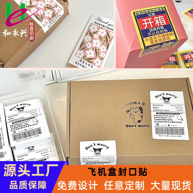 飞机盒封口贴不干胶粘性强耐撕扯牢固封盒不脱落多样图案可选择