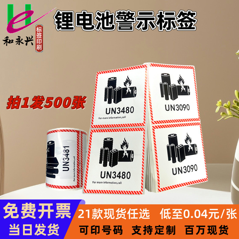超强粘锂电池防火标签不干胶警示标签UN3481/UN3480物流外箱标签