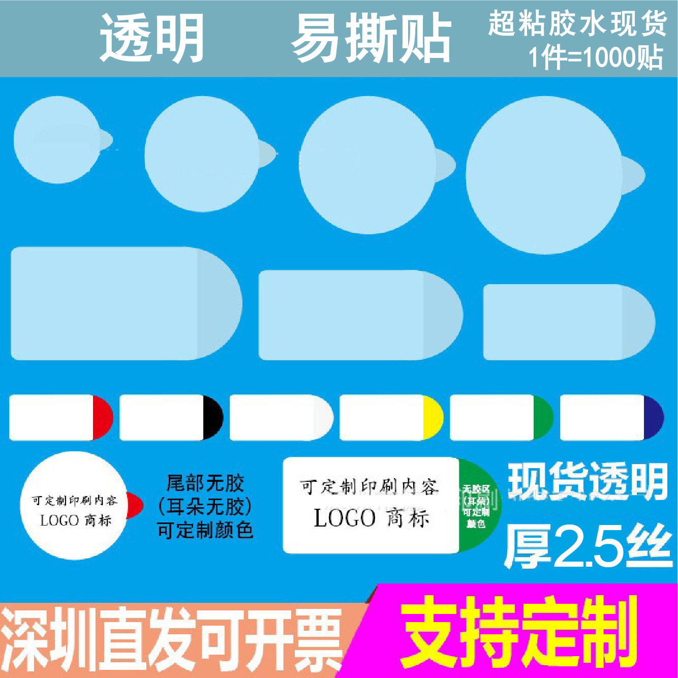 现货易撕贴透明封口贴间隔胶外卖奶茶杯封口贴可移除胶不干胶