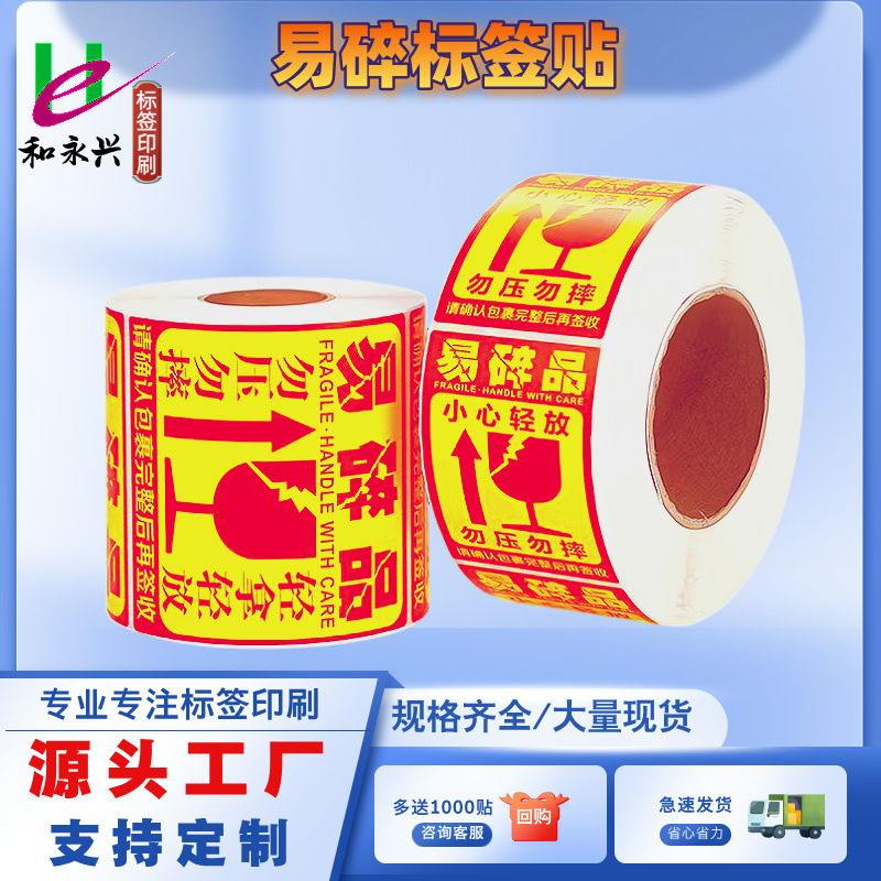 现货批发警示语不干胶标签玻璃易碎品标识贴防碎轻拿轻放条形码