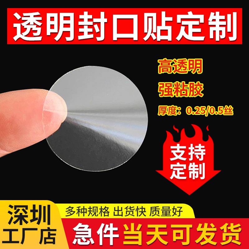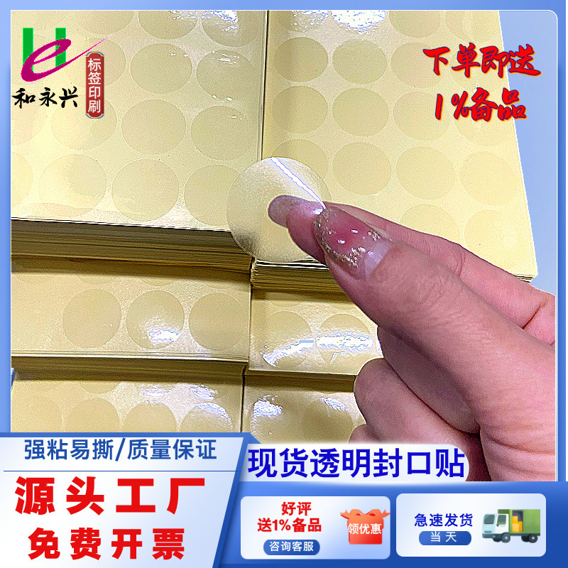 批发现货透明包装贴纸圆形封口贴牛皮盒彩盒专用封口贴隐形不翘边