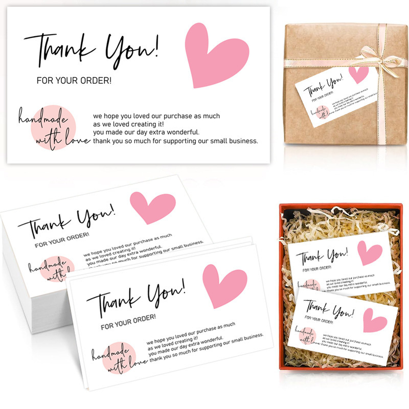 跨境批发粉色爱心感谢卡片thankyou礼品包装小卡片异形封口贴
